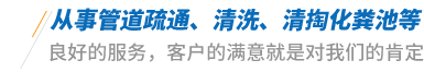 主营业务:掏化粪池、高压清洗、管道疏通、非开挖管道、管道维修置换、移动厕所 、潜水工程、管道清淤、地漏疏通、尿碱清洗、马桶疏通、清理隔油池、拉管顶管。